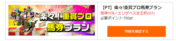 今回重賞の検証をしたかったので「楽々!重賞プロ馬券プラン」に参加しました。