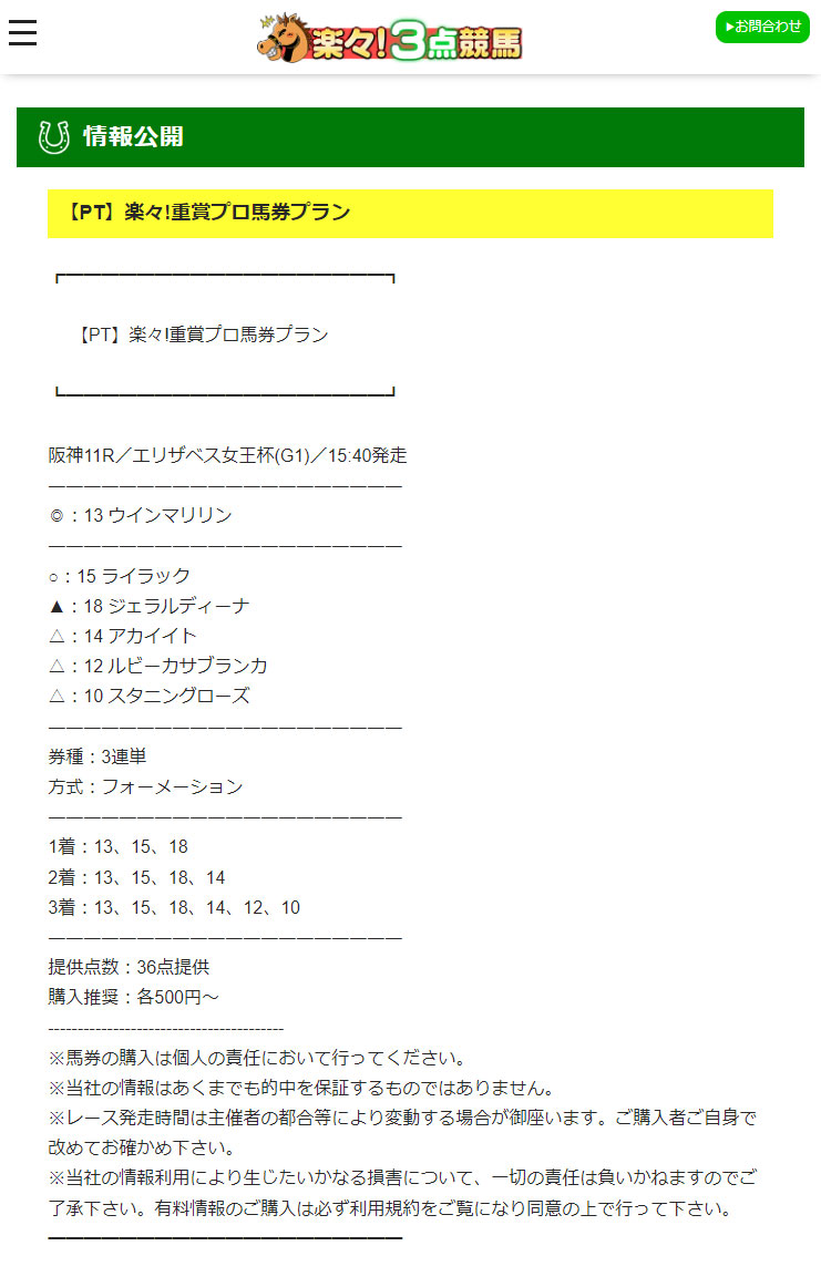 また『楽々、3点競馬』に関しては無料情報もぜひ検証してみたいなと思います。