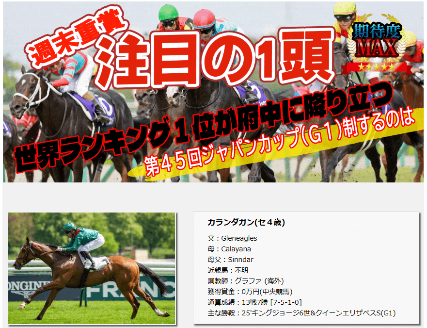 そして何より、先週水曜にアップした「注目の1頭・カランダガン」が、そのままジャパンカップを制覇!
