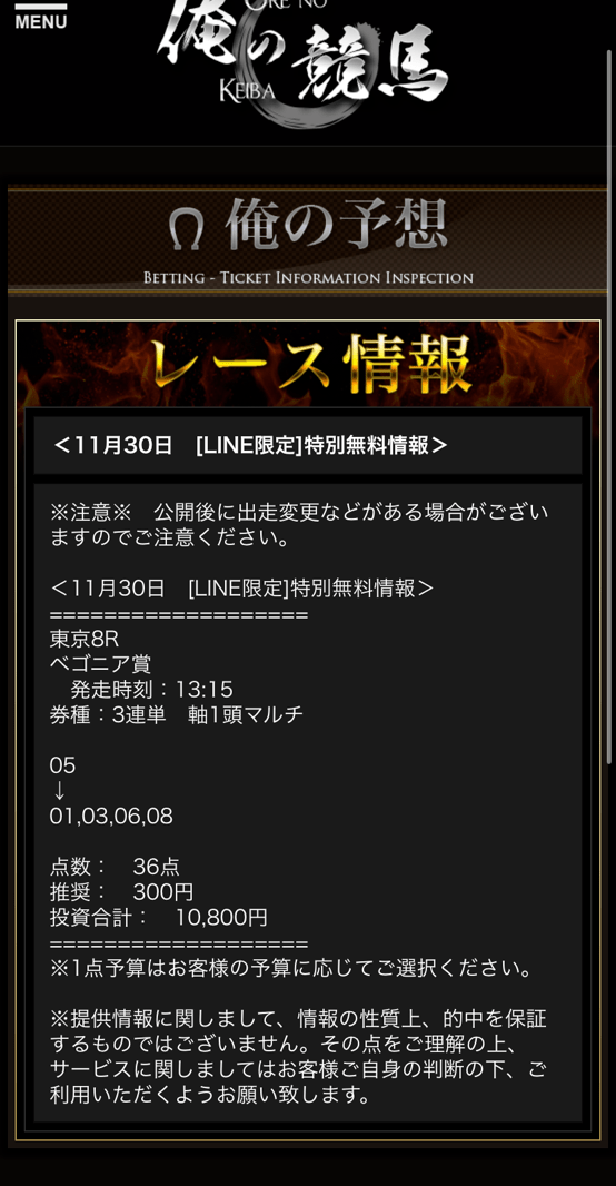 30日、公開された「東京8R無料ベゴニア賞」予想で公開された買い目「3連単」万馬券的中!