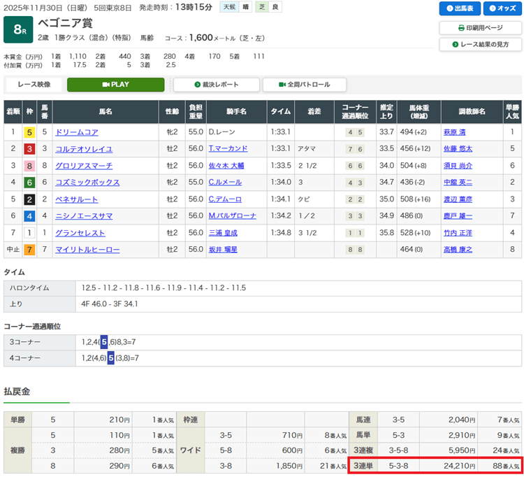 2025年11月30日(日) 東京12R ジャパンカップ(GⅠ)