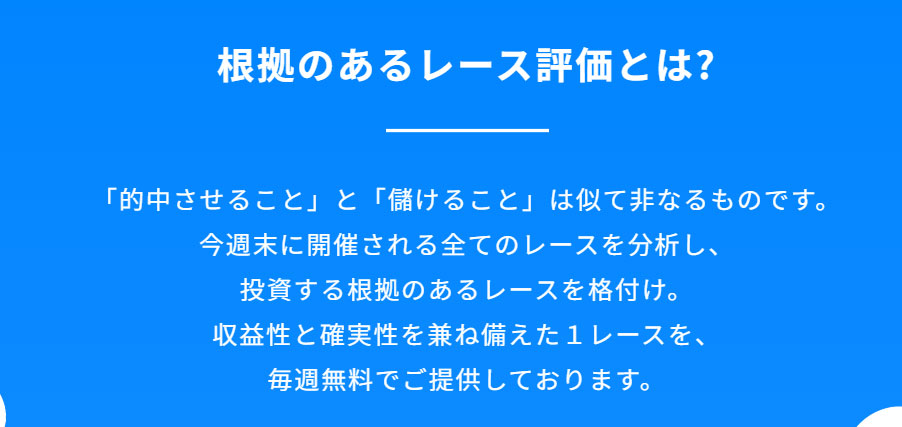 今週末に開催の全レースを分析して、投資する根拠ある収益性と確実性を兼ね備えたレースを選りすぐり毎週無料提供してくれるようです。