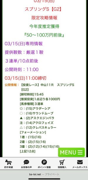 15日(日)の無料情報でめっちゃ勝てました! 朝一のレースから7万9900円とかありがたいね、金鯱賞も獲れたし大満足です!