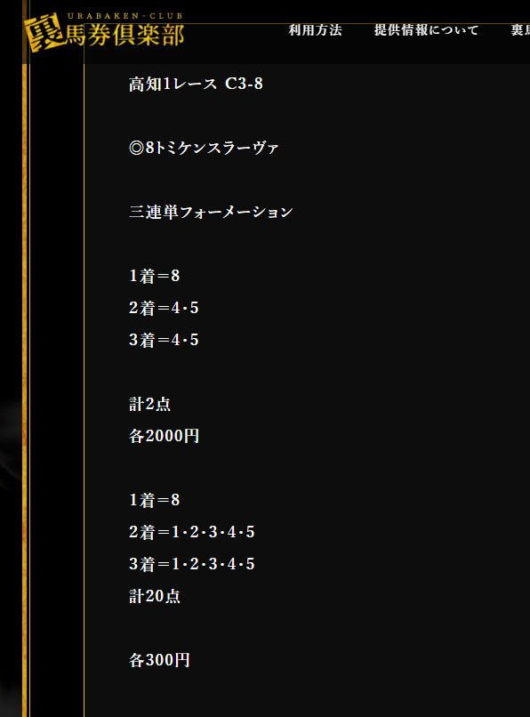 3連単3千円決着だったけどはずれました。 だめですね~裏馬券倶楽部は・・・