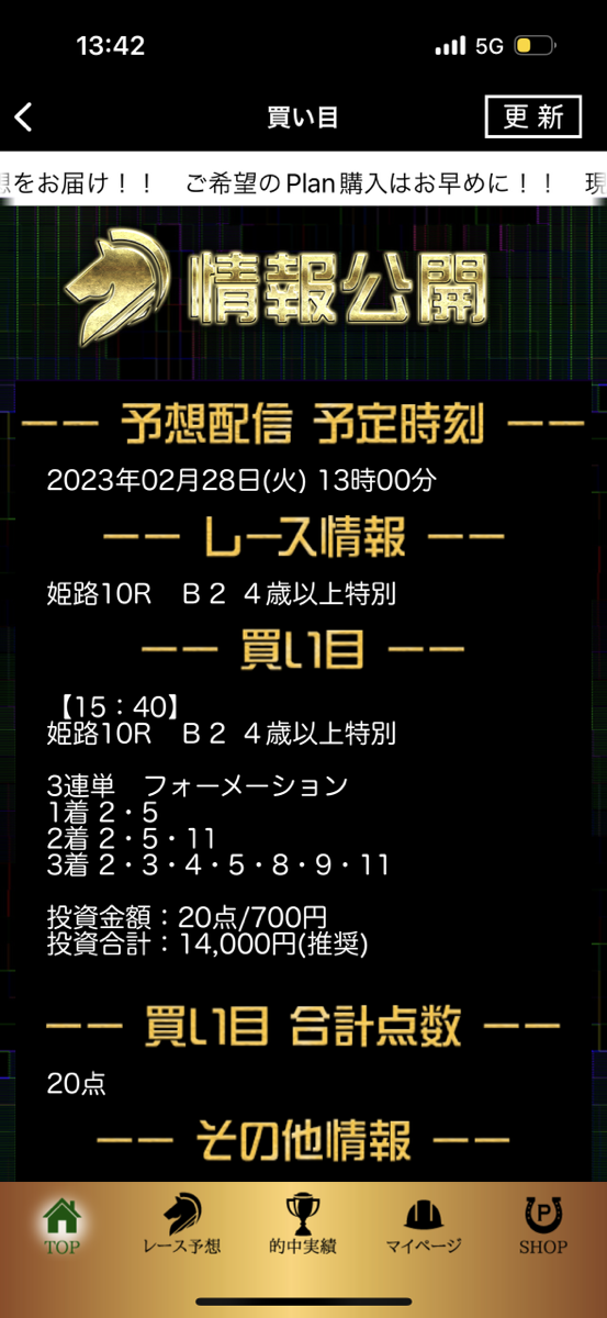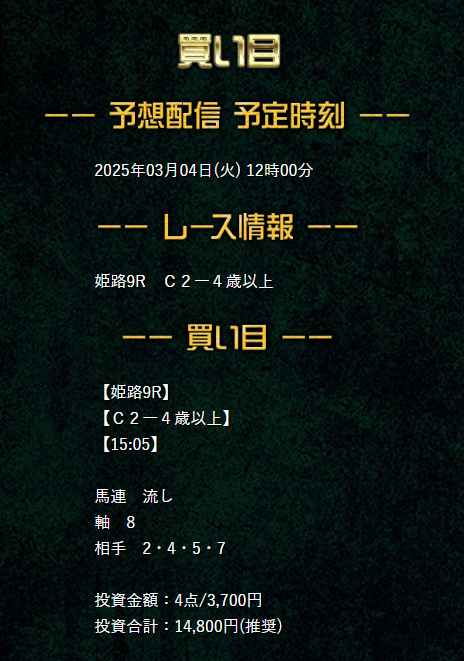 少点数買い目のご提供!