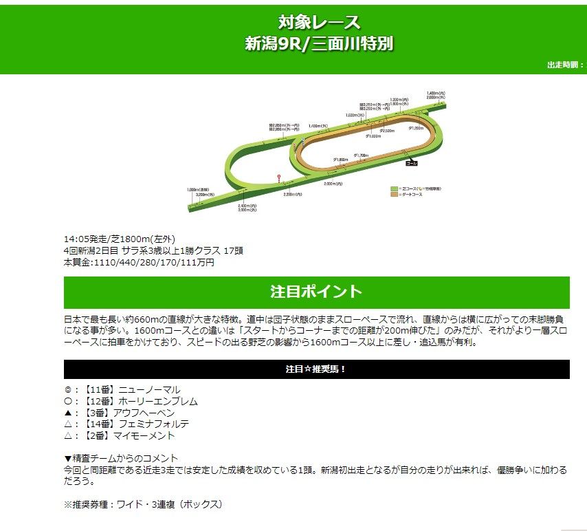 無料予想は平日が地方、土日が中央となっています