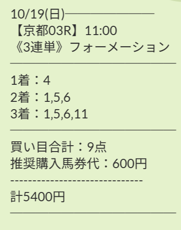 いや~、最初買い目見た時に6人気と9人気が1着固定で大丈夫か不安でした、馬券代も1万円とそこそこしたので、だけど出だしから9人気が好スタートで逃げてそのままゴールイン。