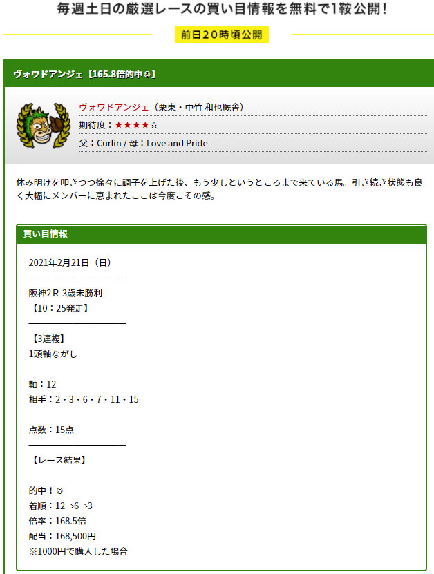信頼しているサイトで朝から的中もらえると嬉しいですね!