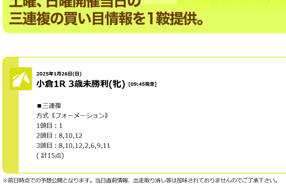 小倉1レース目から万馬券的中ゲット~! あんまり知られてないサイトだけど良さげだから口コミ書いて自慢させてくださいw